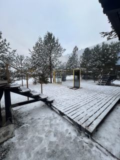 Также предусмотрен отдельный комфортный дом для администрации площадью 60 кв.м и хозяйственный блок для хранения инвентаря и дров. На территории комплекса обустроены: детская площадка, общий бассейн IPOOLGO и шезлонги, есть возможность залить каток в зимний период.