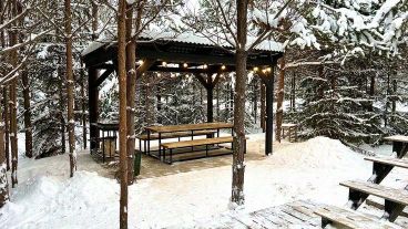 База отдыха состоит из трех современных домиков для гостей: