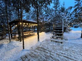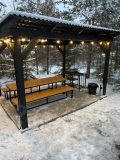 На территории каждого домика есть уютная открытая терраса, подогреваемая купель, сауна, собственная парковка, а также большая мангальная зона с беседкой — идеальное место для уличных посиделок в компании друзей или семьи!