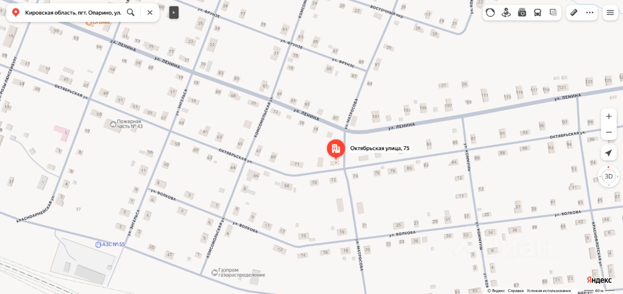 Нежилое здание "здание магазина" площадью 110,2 кв.м., кадастровый номер 43:23:330126:113, расположенное по адресу: Кировская область, пгт. Опарино, ул. Октябрьская, д. 75. Количество этажей 1, в том числе подземных 0. Объект недвижимости расположен в границах земельного участка с кадастровым номером 43:23:330126:48, право государственной собственности в отношении которого не разграничено. В отношении земельного участка оформлены арендные отношения. Вид права собственность. Обременение аресты, запрет, наложенный ОСП по г. Новодвинску УФССП России по Архангельской области и Ненецкому автономному округу, СОСП по Архангельской области и Ненецкому автономному округу ГМУ ФССП России, аренда в пользу ООО "Савва". Собственник ООО "Северная торгово-инвестиционная компания" ИНН 2903006649 (уведомление 130 от 19.01.2026).