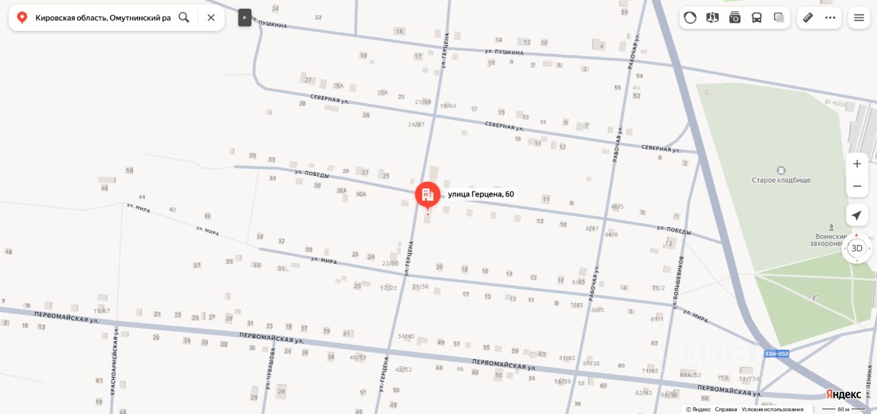 Нежилое здание и земельный участок в составе одного лота, расположенные по адресу: Кировская область, Омутнинский район, пгт. Песковка, ул. Герцена, д.60. Нежилое здание "здание магазина" с кадастровым номером 43:22:350304:235, площадью 170 кв.м., количество этажей: 1. Земельный участок с кадастровым номером 43:22:350304:130, площадью 591 кв.м., категория земель: земли населенных пунктов, вид разрешенного использования: для размещения здания. Вид права собственность. Обременение аресты, граница земельного участка не установлена в соответствии с требованиями земельного законодательства (требуется уточнение). Собственник ООО "ПЕСКОВСКИЙ ТОРГ" ИНН 4322003564 (уведомление 84-ГМУ от 19.03.2026).