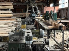 Цех 2 - изготовление домокомплектов линия Термит 320У + чашкорез (гидравлика, разные углы нарезки) + торцовка гидравлика + оборудование для изготовления проф. бруса