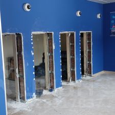 Отделка: полы - плиточные, ковровое покрытие; стены - окраска, плитка, потолок типа Армстронг. Окна алюминиевые глухие, не открывающиеся (воздухообмен за счет приточно-вытяжной вентиляции).