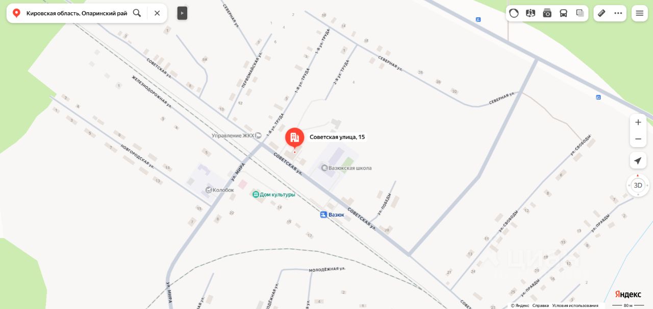 Нежилое здание "магазин" площадью 655,4 кв.м., кадастровый номер 43:23:350101:308, расположенное по адресу: Кировская область, Опаринский район, п. Вазюк, ул. Советская, д. 15. Количество этажей 1, в том числе подземных 0. Вид права собственность. Обременение аресты, запреты, наложенные ОСП по г. Новодвинску УФССП России по Архангельской области и Ненецкому автономному округу, СОСП по Архангельской области и Ненецкому автономному округу ГМУ ФССП России, аренда в пользу ООО "Березка". Собственник ООО "Северная торгово-инвестиционная компания" ИНН 2903006649 (уведомление 981 от 03.04.2026).