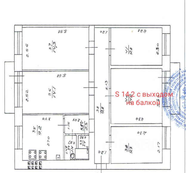 Жилая комната 14,2 кв. м. с выходом на остеклённый балкон в пятикомнатной квартире.