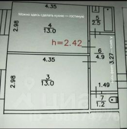 Планировка включает две комнаты по 13 кв.м, ванную 2.5 кв.м, туалет 1.2 кв.м, кухню - прихожку 5 кв.м (можно оформить кухню - гостинку в одной из комнат) + 2 шкафа в общих  помещениях.