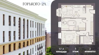 Вашему вниманию предлагается 2-комнатная квартира 80 площадью 57,4 квадратных метров на 5 этаже. Сдача дома - 3 квартал 2027