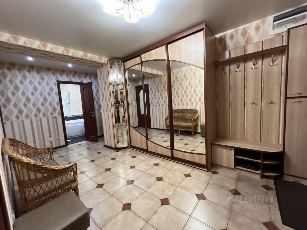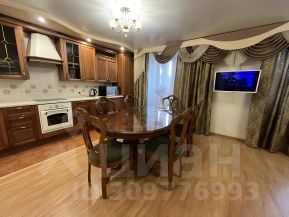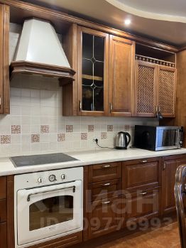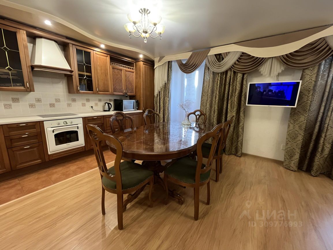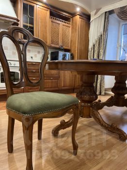 Евротрешка : большая совмещенная кухня -гостиная площадью 20 кВ метров с кухонным гарнитуром, раздвижным обеденным столом с комплектом стульев из массива натурального дерева производства Италии MIRANDOLA, раскладным диваном из натуральной кожи, духовым шкафом, плитой и вытяжкой в классическом стиле, так же из техники стиральная машина, телевизор, холодильник. Эти мебель и техника в отличном состоянии.