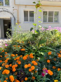 В подъезде поддерживается чистота, красивая придомовая территория с цветами