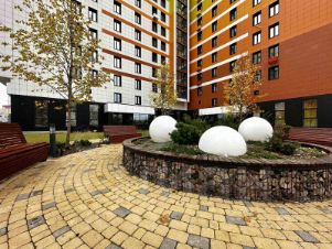 Благоустроенная придомовая территория с оборудованными площадками для отдыха и игр ваших детей всех возрастов. Выполнено красивое озеленение.