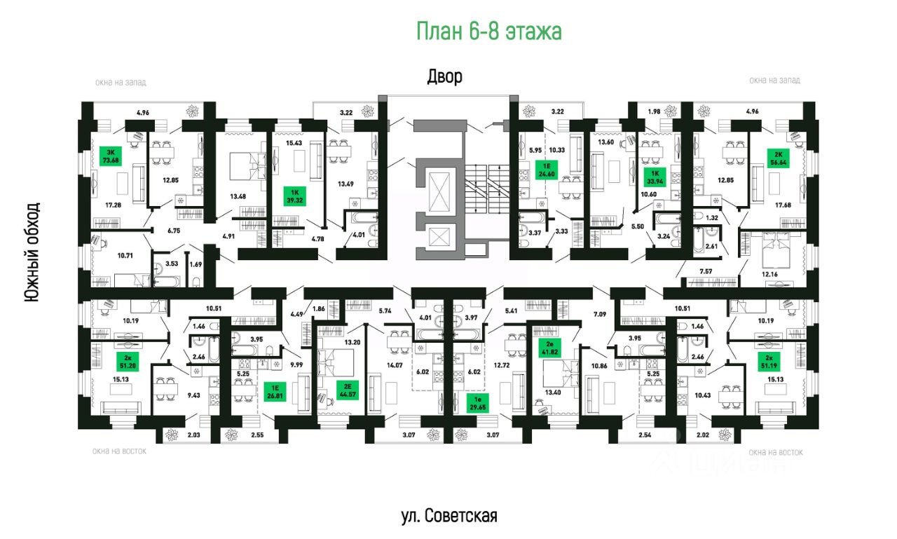 Продается 2-комнатная квартира на 6 этаже, площадью 51.2 квадратных метра. Сдача дома - 2 квартал 2027 года.