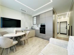 В квартире сделан дорогостоящий ремонт по дизайн-проекту с использованием качественных импортных отделочных материалов.