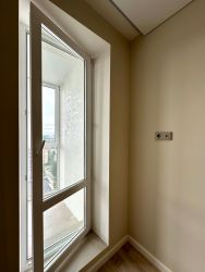 Лоджия застеклена панорамным пластиковым стеклопакетом. Выполнена чистовая отделка.