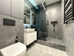 - Установлен водонагреватель и электрический полотенцесушитель.