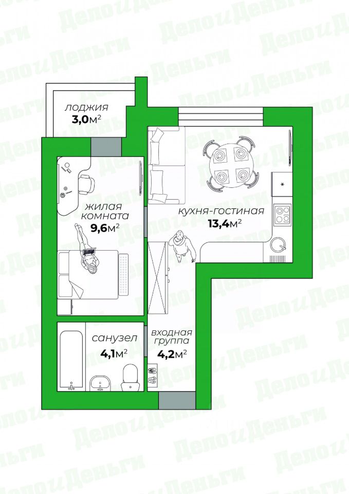 ПЛАНИРОВКА евро 2 комнатной КВАРТИРЫ ПРЕДУСМАТРИВАЕТ :