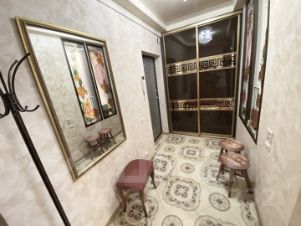 ** В квартире натяжные потолки, ламинат, дорогие обои, декоративная штукатурка на стенах в коридоре и прихожей, зонированное освещение;