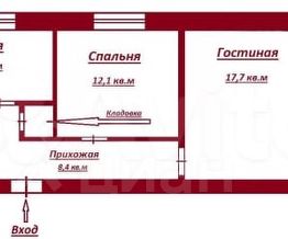Планировка квартиры: кухня 8,3 м2, гостиная - 17,7 м2 с выходом на лоджию, детская - 12,1 м2, санузел раздельный, прихожая 8,4 м2, кладовка - 1,5 м2.