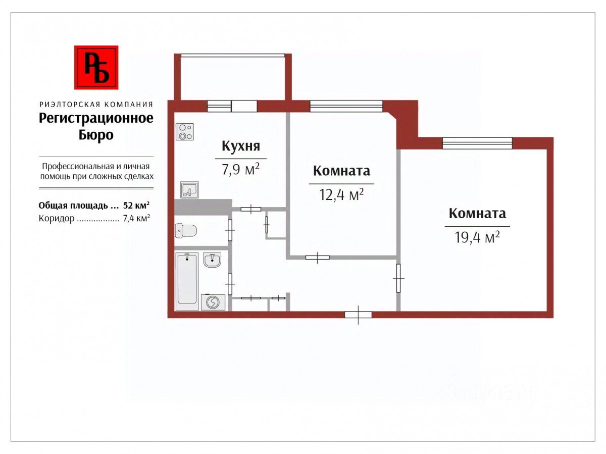 Квартира, расположенная на 9-м этаже, общей площадью 52 кв.м, обладает рядом преимуществ. Во-первых, это прекрасный вид из окон. Во-вторых, отсутствие соседей сверху. Планировка квартиры с кухней 8 кв.м, гостиной 19 кв.м и спальней 12,4 кв.м, позволяет удобно разместиться семье, а лоджия 3,5 кв.м может быть переоборудована в дополнительное пространство по вашему вкусу.