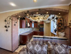 Остаются кухонный гарнитур в классическом стиле и встроенная техника - варочная панель, духовой шкаф. В гостиной есть электрический камин. Установлены качественные пластиковые окна и межкомнатные деревянные двери.