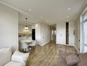 Современный дизайнерский ремонт от популярной студии "А+Б" с использованием качественных строительных материалов.