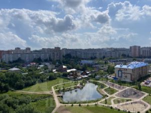 Окна квартиры выходят на восток и на запад с видом на живописный пруд и детские площадки