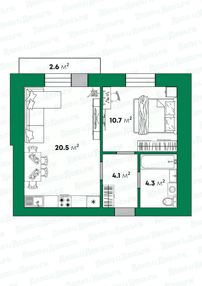 В продаже просторная евро-двухкомнатная квартира площадью 40,5 м2 в благополучном для проживания микрорайоне "Озерки".