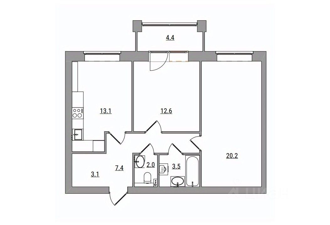2-комнатная, 66.3 м², 13 по адресу Парковая, 1б Тип дома: Кирпич. Жилой комплекс "Сити Парк"Преимущества покупки квартиры в новостройке напрямую от застройщика КСМ: