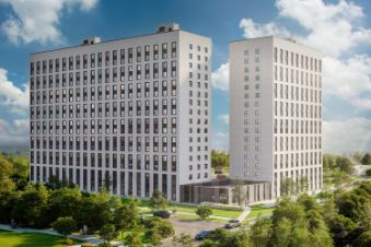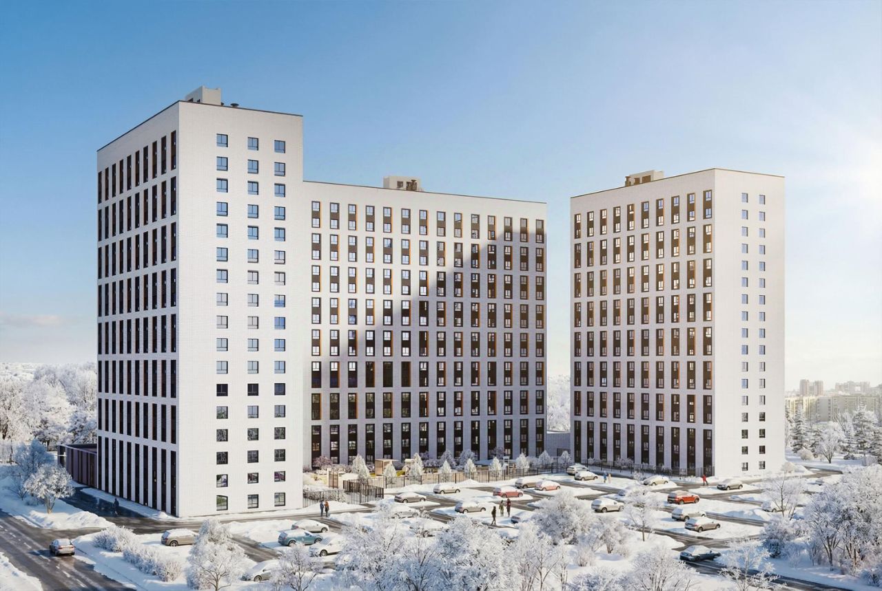 Современный 17этажный дом - сразу несколько секций, объединённых общим двором. Архитектурное решение сочетает функциональность и эстетику, создавая привлекательный облик микрорайона.