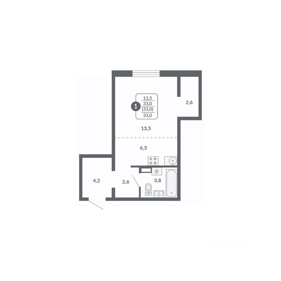 Продается 1-комн. квартира, 30,4 м²