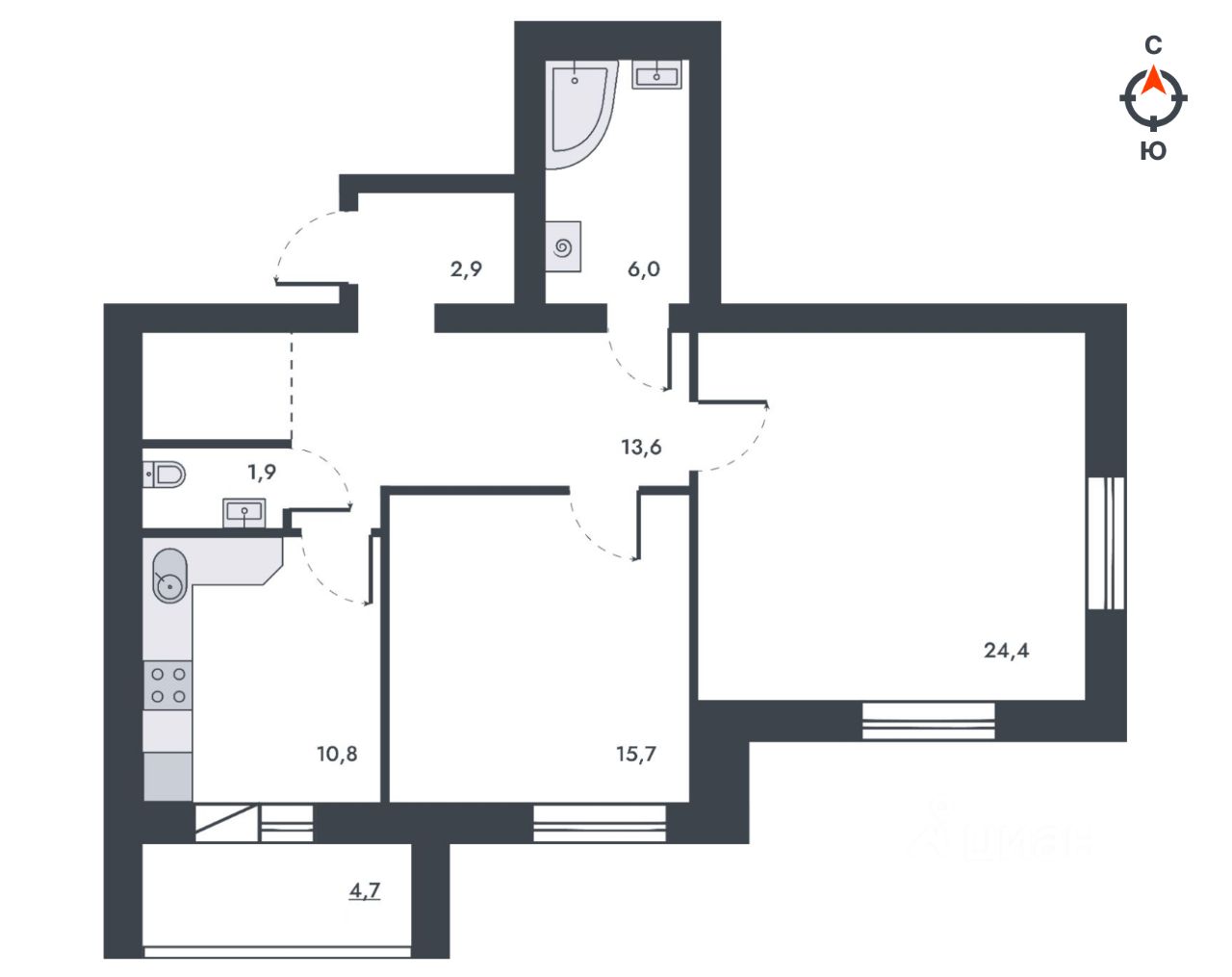 2-комнатная, 80.2 м², 45 по адресу Дорофеева, 24 Тип дома: Кирпич. Жилой комплекс "LIFE | Лайф"Преимущества покупки квартиры в новостройке напрямую от застройщика КСМ: