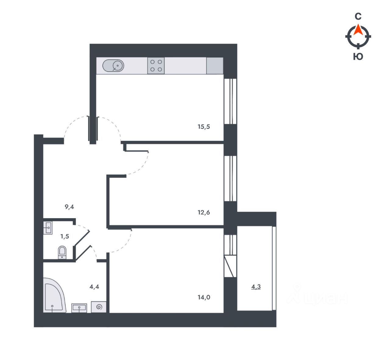 2-комнатная, 62.2 м², 282 по адресу Дорофеева, 24 Тип дома: Кирпич. Жилой комплекс "LIFE | Лайф"Преимущества покупки квартиры в новостройке напрямую от застройщика КСМ: