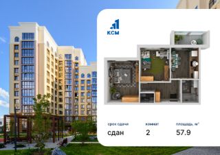 2-комнатная, 57.9 м², 283 по адресу Дорофеева, 24 Тип дома: Кирпич. Жилой комплекс "Лайф"Преимущества покупки квартиры в новостройке напрямую от застройщика КСМ: