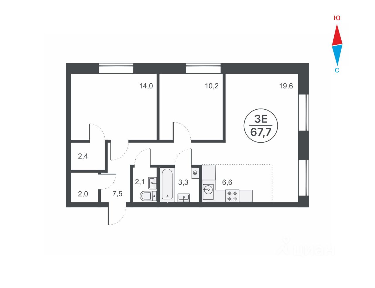 3-комнатная, 67.7 м², 119 по адресу Энтузиастов, 23 Тип дома: Каркас/кирпич. Жилой комплекс "LIFE | Лайф"Преимущества покупки квартиры в новостройке напрямую от застройщика КСМ: