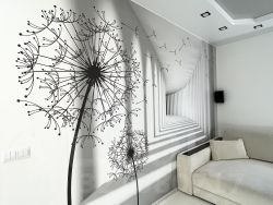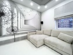 В гостиной оформление стены фреской.