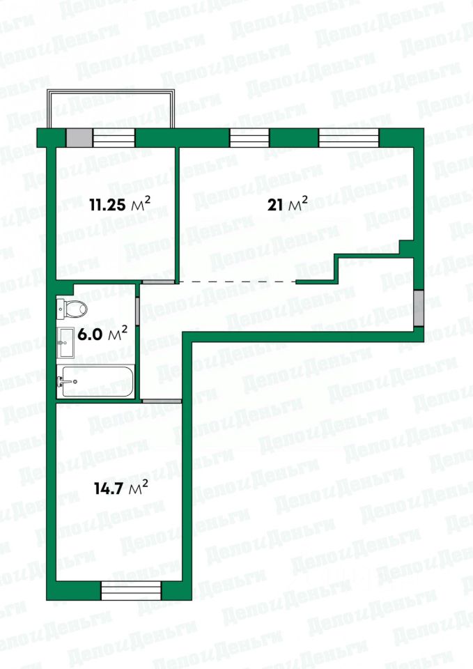 Раздельные комнаты площадью 14 и 11м