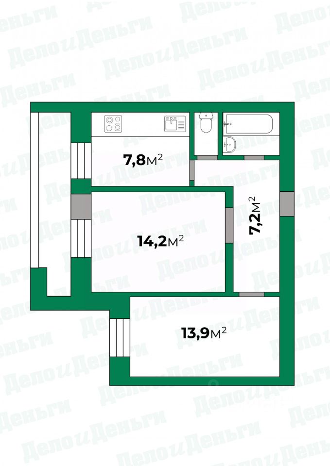 - жилые комнаты площадью 14,2; 13,9 кв.м.