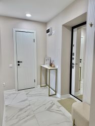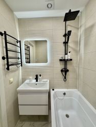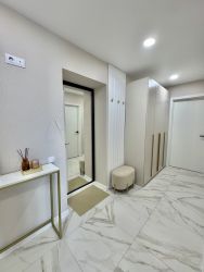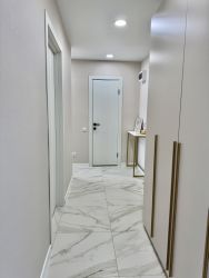 Выполнены работы: стяжка пола, замена электрики, замена труб водоснабжения и канализации, новые окна и двери, установлена новая сантехника. санузел в кафеле, пол - керамогранит. Ремонт делался по стильному дизайн-проекту.