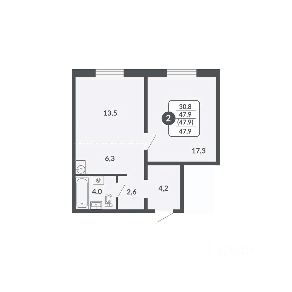 47,9 м²