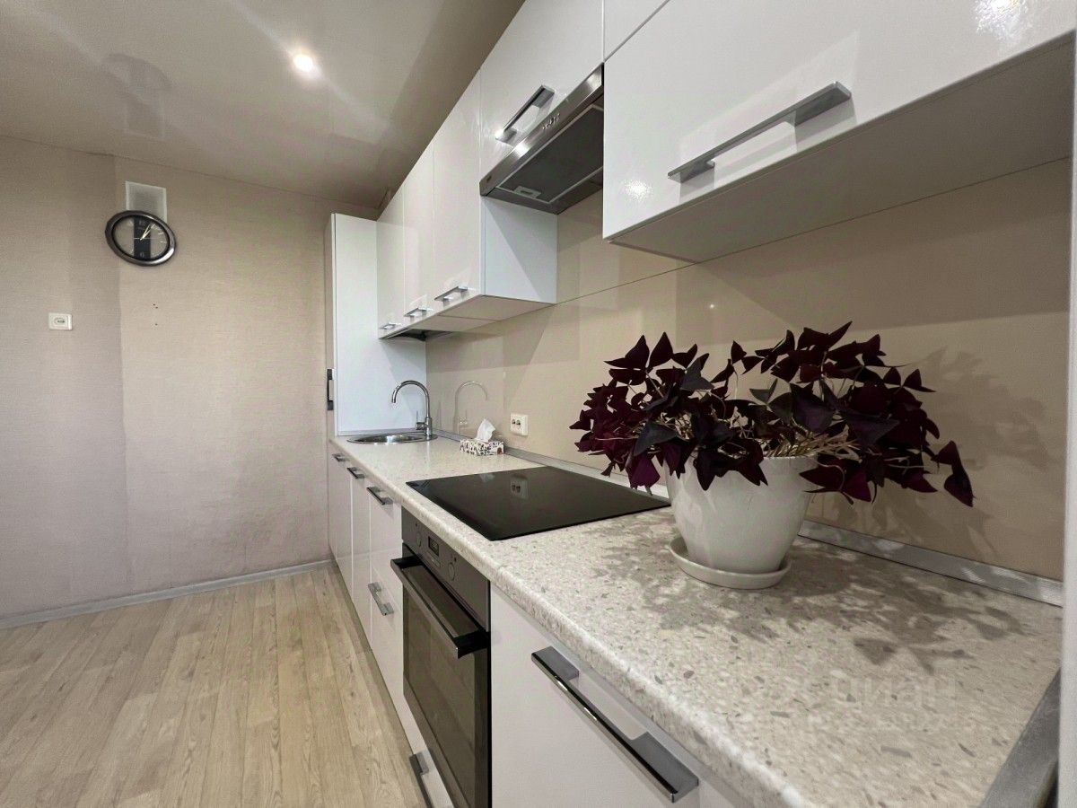 При продаже квартиры остается качественный встроенный кухонный гарнитур, варочная панель, вытяжка, встроенная прихожая, мебельная стенка в гостиной, шкаф-купе в маленькой комнате, встроенная мебель в ванной.