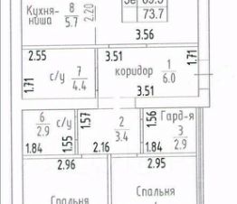** Квартира не угловая, с прекрасным видом из окон. Удобная, функциональная планировка - её легко можно перепланировать в полноценную 3-комнатную квартиру, разделив кухню-гостиную на полноценную комнату и кухню. Общая площадь: 74 кв.м., две спальни: 12 кв.м., 12 кв.м. (одна из них с лоджией), кухня-гостиная: 26 кв.м. (также имеет лоджию). Квартира в предчистовой отделке: стены оштукатурены, пол - стяжка, проведена электропроводка, установлены батареи. Два раздельных санузла и большая кладовая (3 кв.м.). Горизонтальная разводка отопления, индивидуальные приборы учёта, в доме хорошая теплоизоляция, общедомовой прибор учёта отопления, соответственно - комфортные коммунальные платежи. Приятный бонус - в цокольном этаже есть отдельная кладовая: 6 кв.м. (покупали отдельно у застройщика), в стоимость квартиры не входит. Готовы её продать отдельно (цена обсуждается).