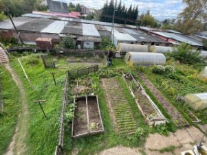 Окна выходят во двор, где расположены огороды. В подарок к квартире идёт участок земли с 3 грядками. Два окна выходят на юг, одно на восток.