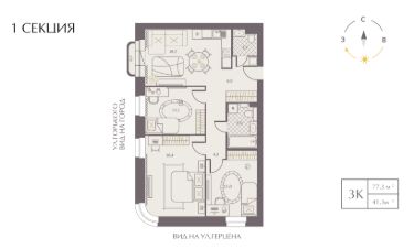 Вашему вниманию предлагается 3-комнатная квартира  14 площадью 77,3 квадратных метров на 3 этаже. Сдача дома - 3 квартал 2027