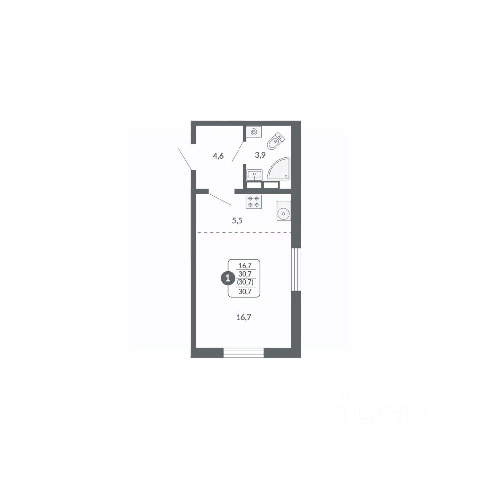 Общая площадь30,7 м²