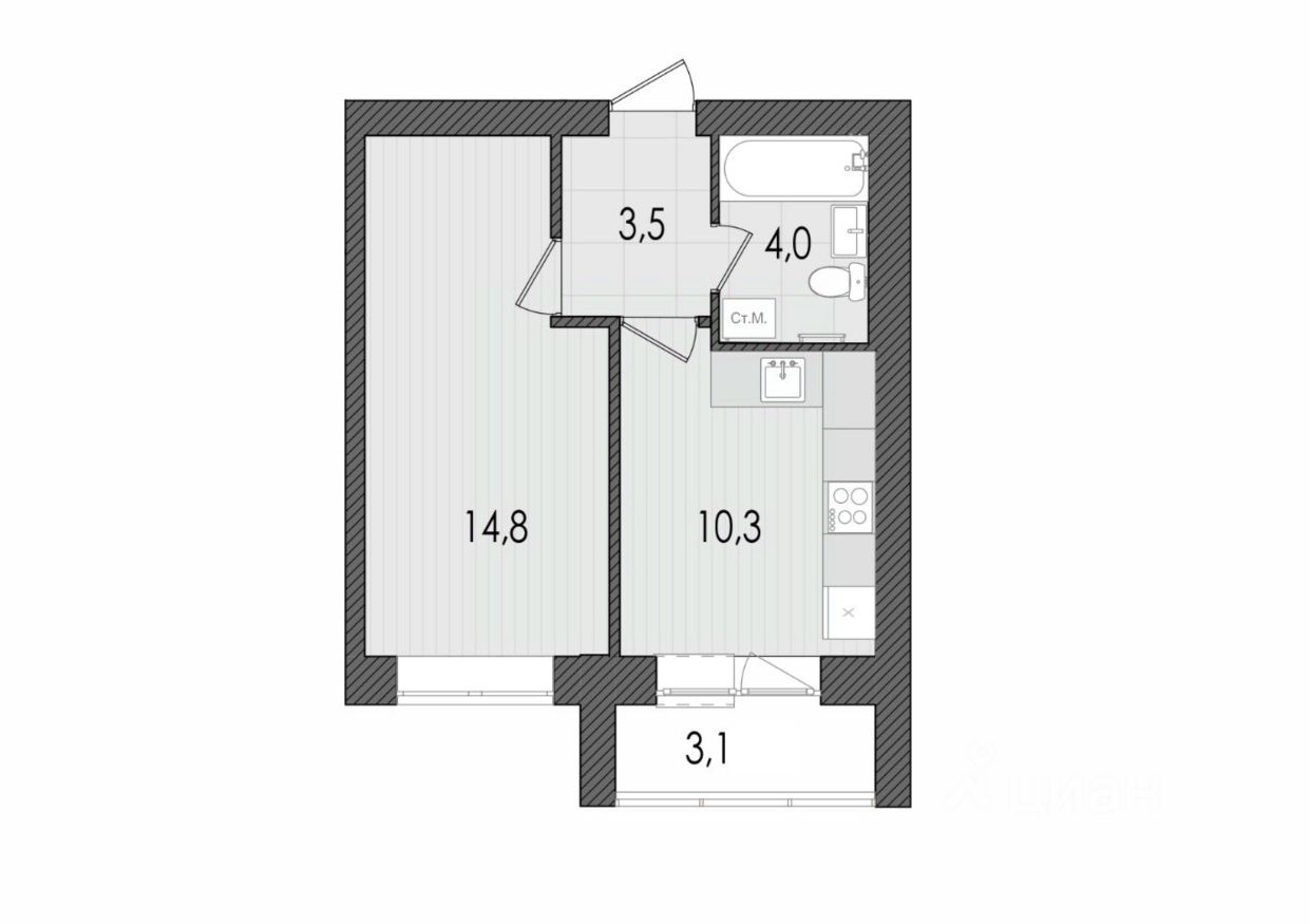1-комнатная, 35.6 м², 43 по адресу Дорофеева, 22 Тип дома: Кирпич. Жилой комплекс "LIFE | Лайф"Преимущества покупки квартиры в новостройке напрямую от застройщика КСМ:
