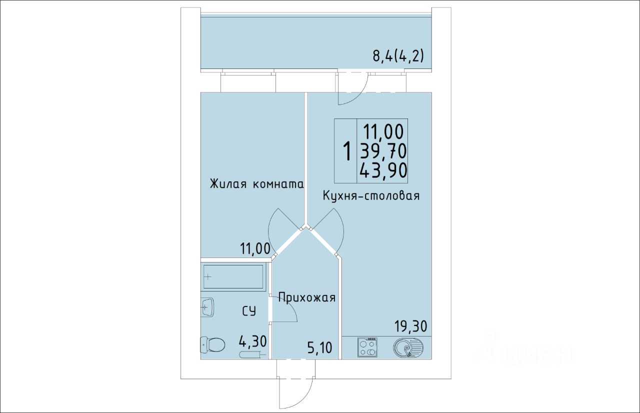 Общая площадь43,9 м²
