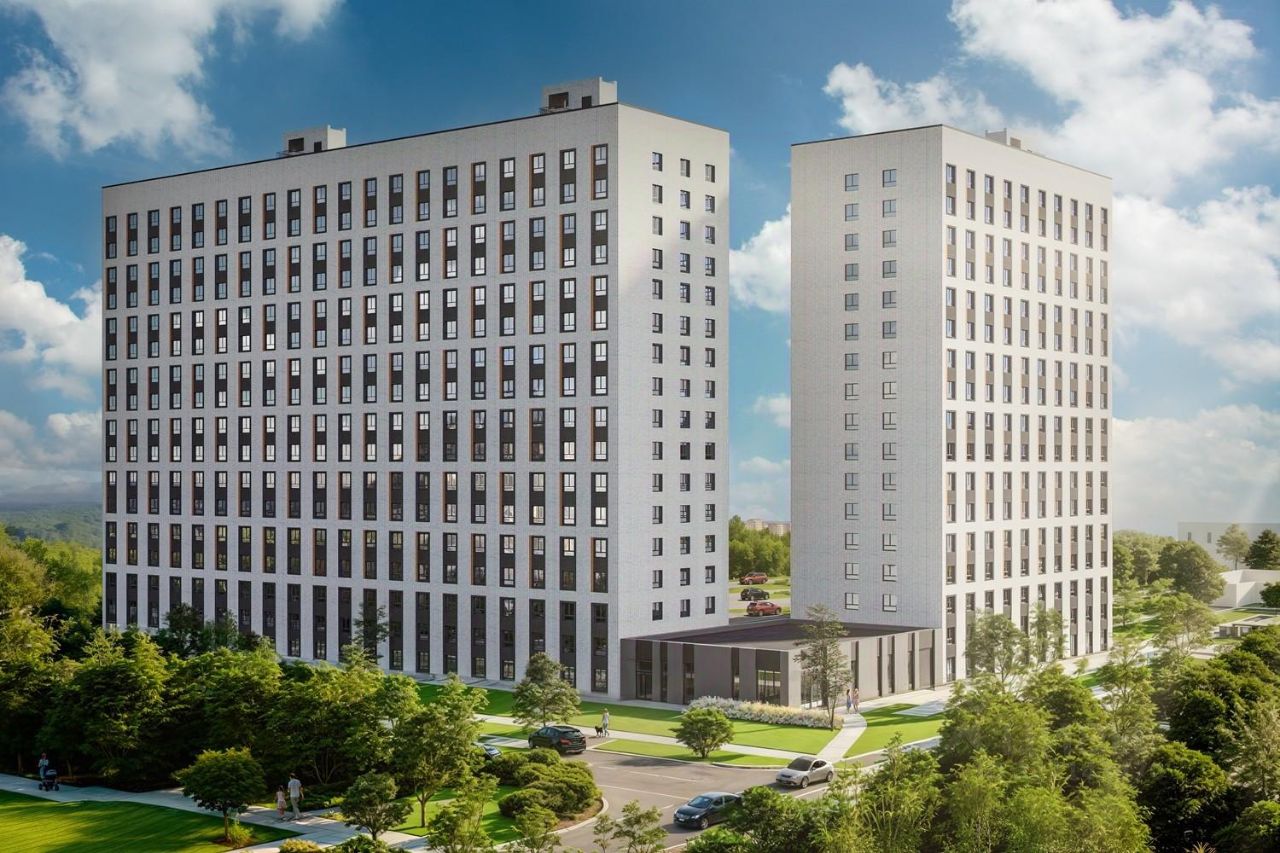 Современный 17этажный дом - сразу несколько секций, объединённых общим двором. Архитектурное решение сочетает функциональность и эстетику, создавая привлекательный облик микрорайона.