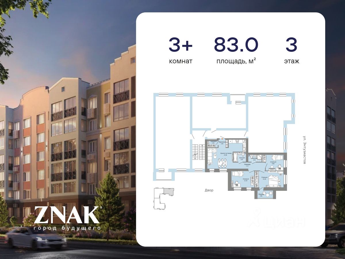 Продается 3-комнатная квартира в 3 км от Зубаревского леса, площадью 83.00 кв. м. Квартира находится в жилом комплексе комфорт-класса ZNAK от девелопера "Железно".