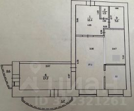 Планировка квартиры: кухня - гостиная - 27,1 м2, спальня - 12 м2, детская - 17,7 м2, санузел раздельный, прихожая - 12,4 м2.