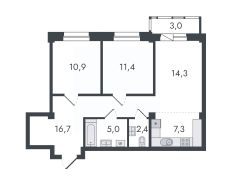 3-комнатная, 71 м², 269 по адресу Чистопрудненская, д. 13 Тип дома: Каркас/кирпич. Микрорайон "Чистые пруды"Преимущества покупки квартиры в новостройке напрямую от застройщика КСМ: