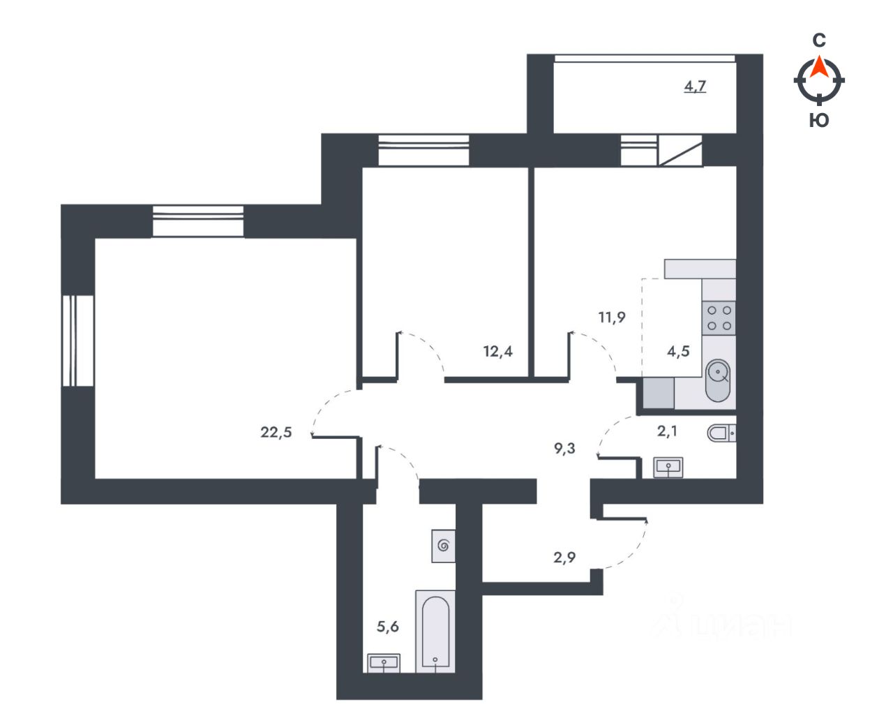 3-комнатная, 76 м², 255 по адресу Дорофеева, 24 Тип дома: Кирпич. Жилой комплекс "LIFE | Лайф"Преимущества покупки квартиры в новостройке напрямую от застройщика КСМ: